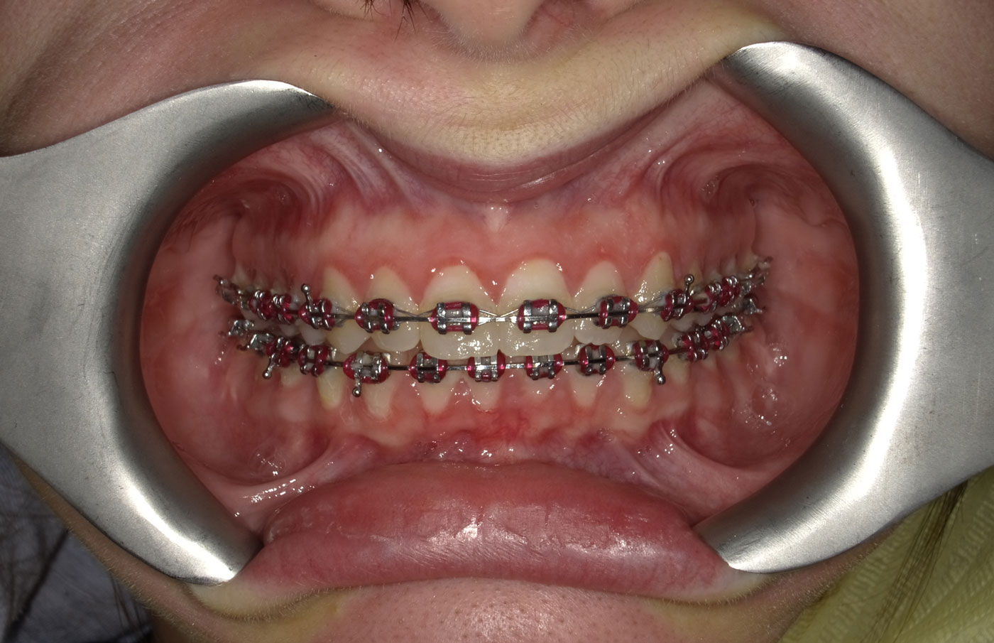 La terapia ortodontica fissa prevede l'applicazione di dispositivi ortodontici (bracket e fili metallici) sui denti al fine di correggere disallineamenti e malocclusioni.